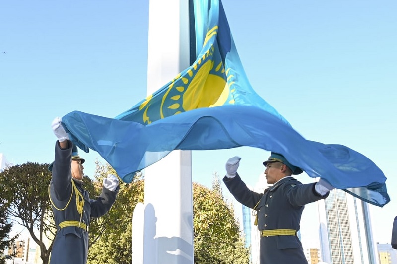 Утром перед резиденцией главы государства состоялась церемония поднятия государственного флага.