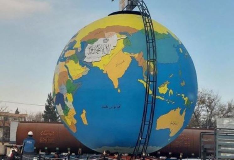 Администрация Кабула, сформированная радикальным движением «Талибан»*, установила свою версию глобуса на одной из улиц афганской столицы. Представленная на нем территория «Исламского эмирата Афганистан»** значительно превышает реальные размеры, занимая земли соседних стран. Фото глобуса появилось в социальных сетях.