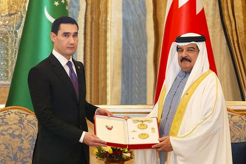 Король вручил Бердымухамедову орден имени Шейха Иса бин Салман Аль-Халифа первой степени – это высшая награда Королевства Бахрейн.