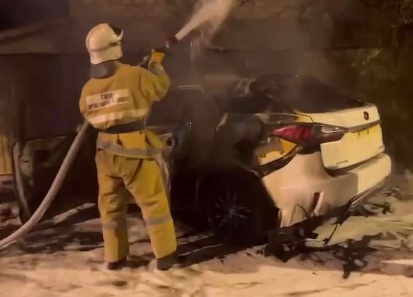 Управление полиции Атырау уточнило, что автопатруль заметил горящий Lexus RX-300 возле дома на улице Наурызалиева 11 мая в 04:21. Правоохранители вызвали на место происшествия пожарных.