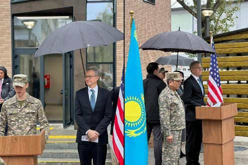 «В Алматы прошло официальное открытие нового конференц-зала Центра миротворческих операций Минобороны Казахстана при участии посла США в Казахстане Дэниеля Розенблюма.