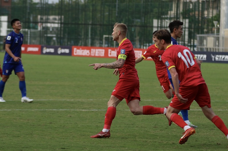 Сборная Кыргызстана обыграла на выезде Тайвань со счетом 2:0. В первом тайме гостям не удавалось проломить оборону хозяев, кроме того, на 24-й минуте вторая желтая карточка была показана дебютанту сборной Саиду Дациеву, который был удален с поля. Однако удаление не помешало кыргызстанцам продолжать атаковать, но на перерыв команды ушли при счете 0:0. Во второй половине встречи на поле появился Кай Мерк, который заработал пенальти, реализованный Валерием Кичиным на 54-й минуте. А за десять минут до окончания основного времени отличился сам Мерк — он подхватил мяч в своей штрафной площади, прошел через все поле, обвел троих соперников и забил, установив тем самым окончательный счет в матче.