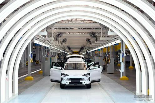 27 июня с конвейера завода BYD Uzbekistan Factory по производству гибридных и электрических автомобилей в Джизакской области сошел первый электромобиль. Событие приурочили к визиту на предприятие президента Узбекистана Шавката Мирзиёева и главы компании BYD Вана Чуаньфу. Мирзиёев оставил на «первенце» свой автограф, сообщает пресс-служба главы государства.