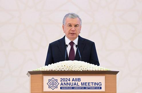 Руководитель Узбекистана горячо поприветствовал президента АБИИ Цзинь Лицюня и его коллег, отметив, что организация не случайно выбрала Самарканд местом проведения своего мероприятия.