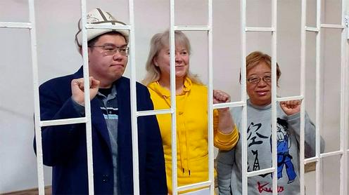 Слева направо: Темирлан Султанбеков, Ирина Карамушкина и Роза Турксевер. Ноябрь 2024 года. Фото из Telegram-канала Kloop.kg