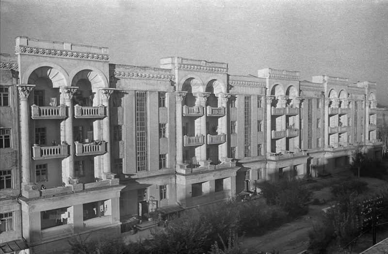 ℹ️ Первый «Дом специалистов» был построен в 1934 году по проекту архитектора Павлова. Это четырехэтажное здание, рассчитанное на 48 квартир, состоящих исключительно из трех или четырех комнат. Строение получило название из-за того, что здесь изначально предполагалось поселить специалистов в своих направлениях. В доме в разное время жили театральные деятели Маннон Уйгур, Аброр Хидоятов, Зухур Кабулов, балерина Бернара Кариева, видные ученые — геолог Борис Наследов, биолог и ботаник Илария Райкова, археолог Галина Пугаченкова и другие.