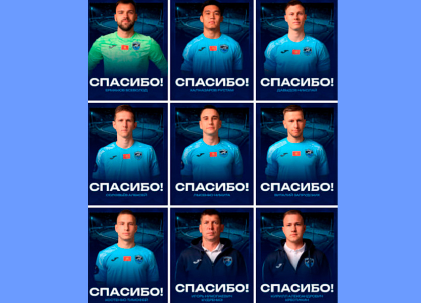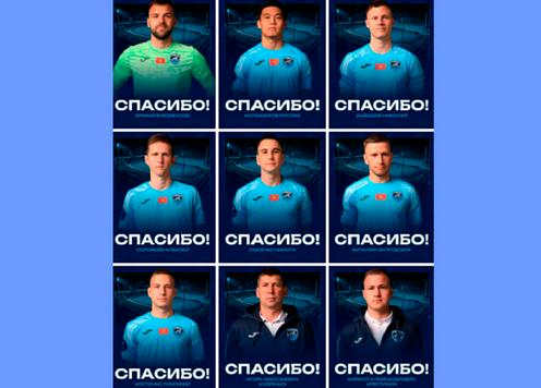 Контракты расторгнуты с российскими футболистами Всеволодом Ермаковым, Виталием Запрудских, Тимофеем Костенко, Никитой Лысенко, Алексеем Соловьевым, Рустамом Халназаровым, а также с кыргызстанцем из Германии Николаем Давыдовым. Покидающие команду члены тренерского штаба — это россияне Игорь Кудренко и Кирилл Крестинин.