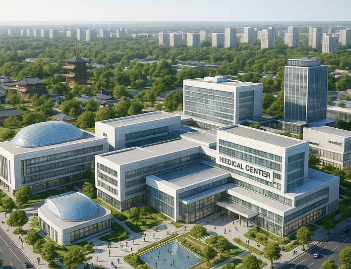 В проекте президентского постановления указано, что городок займет территорию площадью 400 гектаров. Реализацию проекта осуществит компания TMSC, созданная при участии южнокорейского архитектурного бюро HAEANH. Комплекс поспособствует развитию медицинского туризма, внедрению передовых технологий, здесь появится современная инфраструктура для комфортного проживания и ведения бизнеса. Ожидается, что новый объект обеспечит занятость более 7000 человек. По планам, полностью строительные работы завершатся до 2034 года.