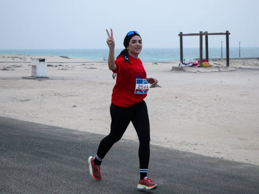 Молодая женщина бежит марафон на иранском острове Киш в Персидском заливе, 5 декабря 2025 года.. Фото с сайта iranintl.com