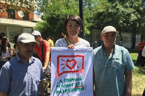 На согласованном митинге в Алматы. Фото Багдата Асылбека для "Ферганы"