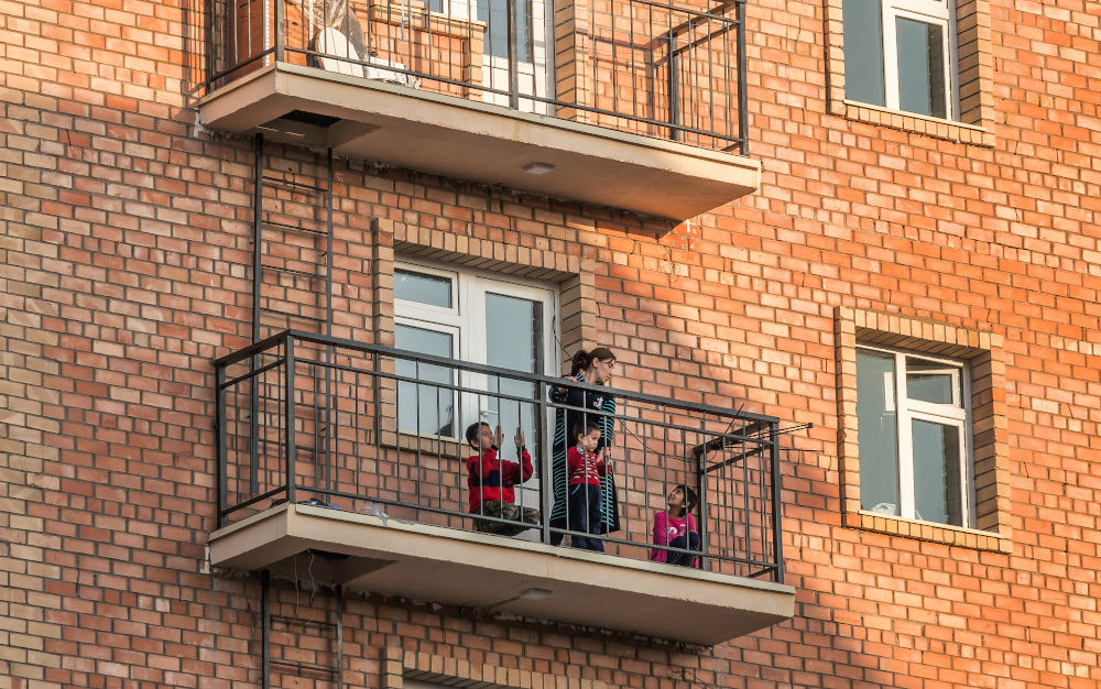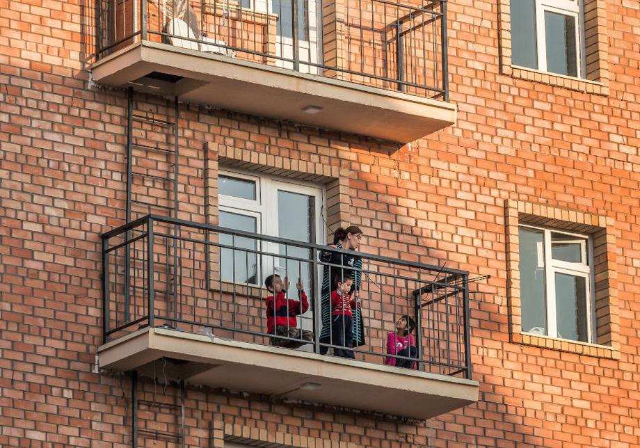 Даже на козырьковом балконе может весело проводить досуг целая семья новоселов. Если очевидный недостаток плотной застройки заключается в дефиците зеленых насаждений, то ее неявное преимущество в том, что почти все балконы и окна большую часть дня находятся в тени соседних домов