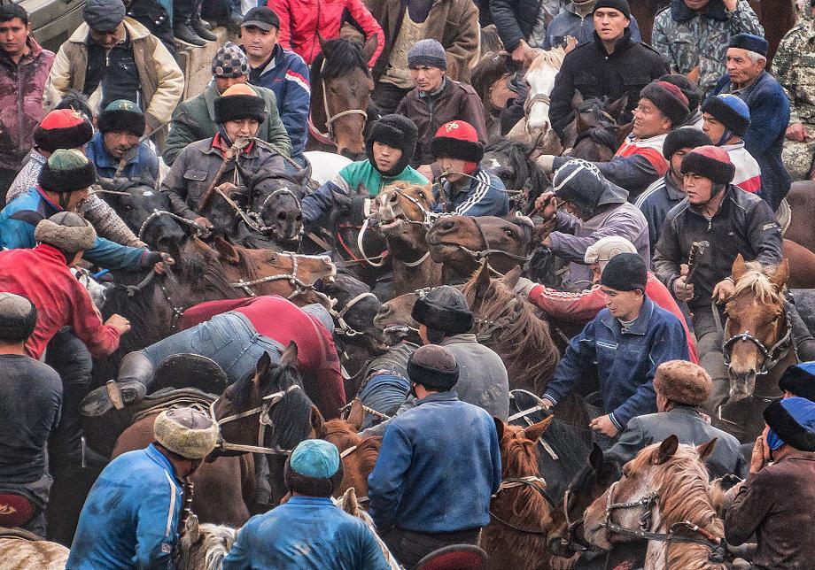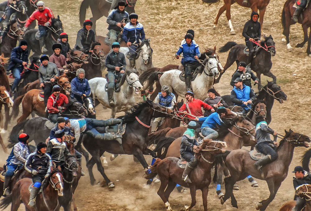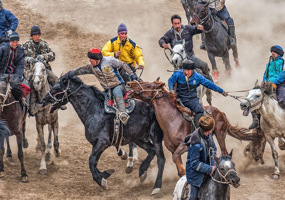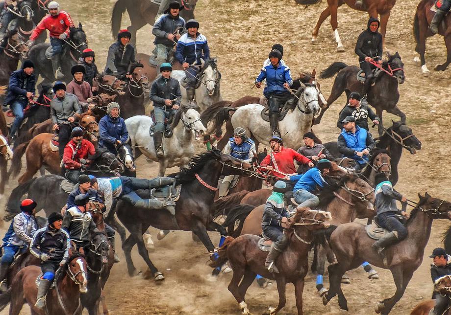 В Узбекистане начался сезон купкари — массовых конных состязаний. Эти традиционные игры кочевых народов в каждой стране Центральной Азии называются по-разному: «кок-бору», «кокпар», «купкари», «улак» и так далее. Но все сводится к единой забаве козлодрания: отобрать у соперника тушу животного и доскакать с ней до финиша. О правилах этой игры спорят Кыргызстан и Казахстан, в России по поводу кок-бору возбуждают уголовные дела о жестоком обращении с животными, — а в Узбекистане снова носятся всадники, одолеваемые боевым азартом. В начале марта корреспондент «Ферганы» увидел, как сотни всадников состязались неподалеку от кишлака Кошкурган в Урта-Чирчикском районе Ташкентской области.