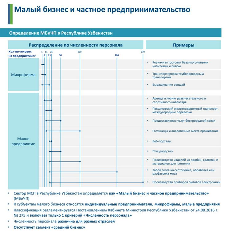 В свою очередь, малые и средние предприятия подразделяются на микропредприятия (с количеством занятых менее 10 человек), малые (от 10 до 49 человек) и средние (от 50 до 249 человек).
