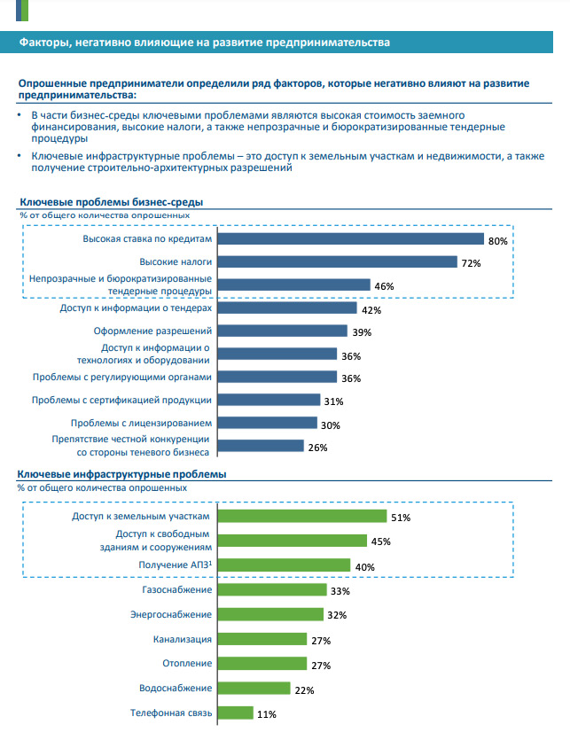 — Одной из основных проблем, с которыми сталкиваются предприниматели, является высокая стоимость заемного финансирования. Часто у потенциальных предпринимателей, имеющих жизнеспособный бизнес-план, но не имеющих достаточного стартового капитала, отсутствует залоговая масса. Предприниматели часто либо не имеют достаточной информации об имеющихся инструментах поддержки бизнеса, либо сталкиваются с забюрократизированной системой при оформлении необходимой документации. Также коммерческие банки практически не предлагают специальные продукты для субъектов МСБ.