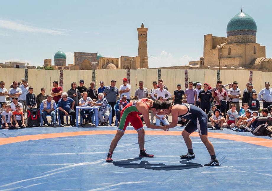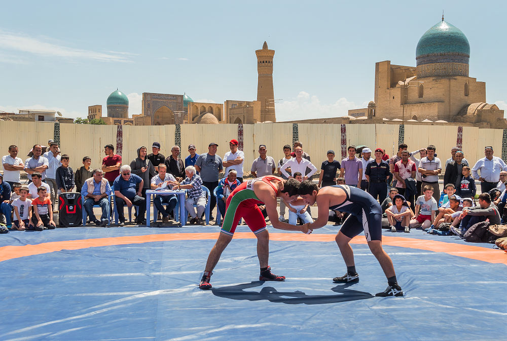 Рядом с древней цитаделью Арк прошли показательные выступления спортсменов — боксеров и борцов, цирковые представления канатоходцев-дарбозов.