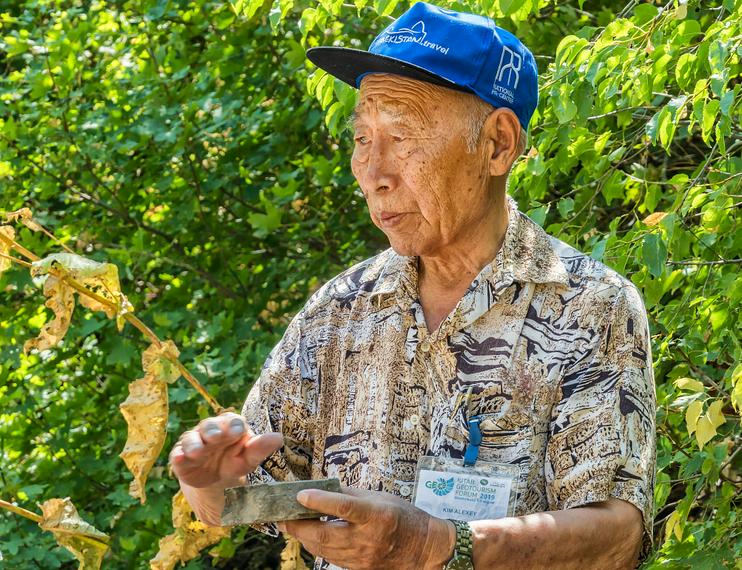 Начальник стратиграфической партии ГУП "Региональная ГСЭ" Алексей Ким рассказывает о находке . Фото Андрея Кудряшова, "Фергана"