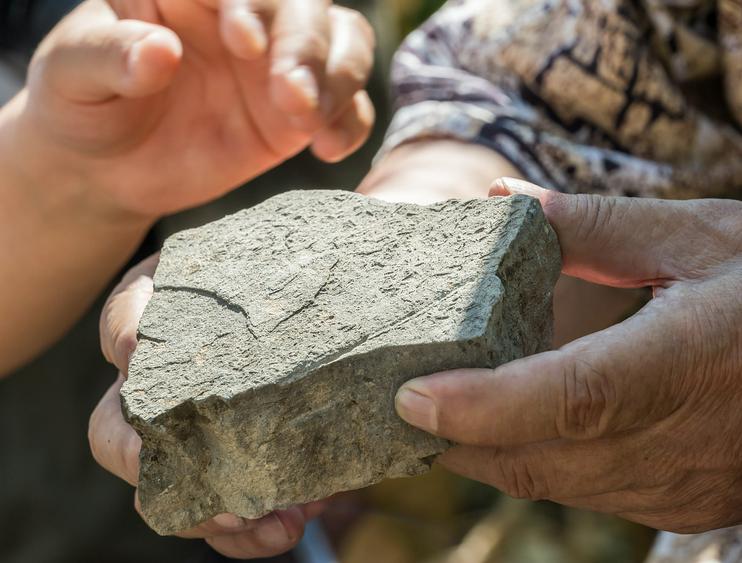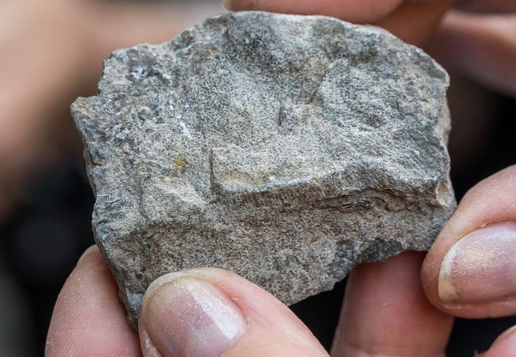 Образец отложений Девонского геологического периода с останками древних морских организмов - тентакулитов. Фото Андрея Кудряшова, "Фергана"