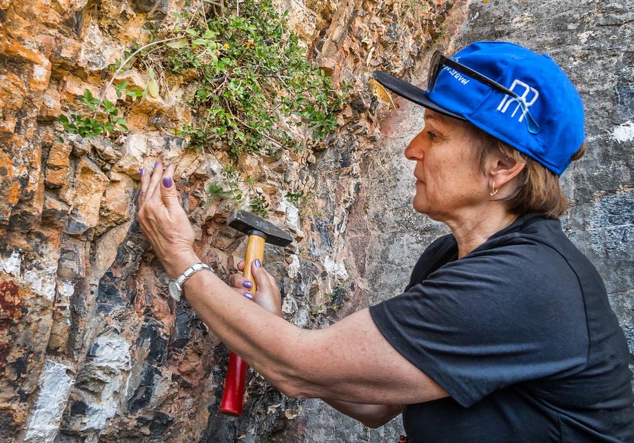 Доктор геолого-минералогических наук, сотрудник Гелогического института Сибирского отделения Академии наук Российской Федерации (Улан-Удэ) Ольга Минина собирает свежие материалы в Зинзильбанском разрезе