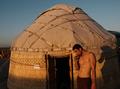 Гость фестиваля возле юртового лагеря, разбитого рядом со сценой