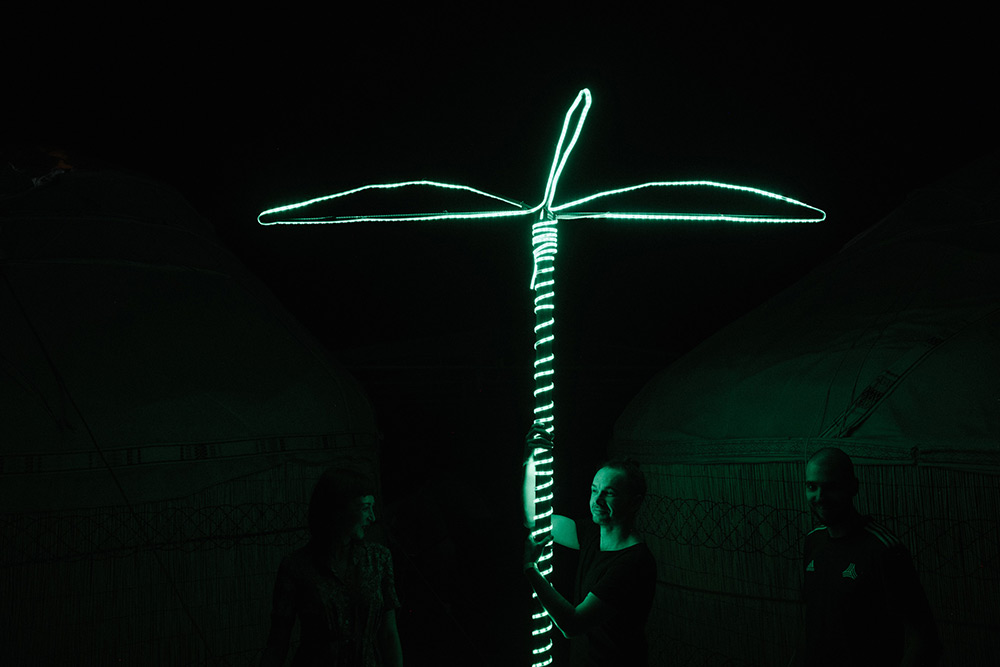Инсталляция московской художницы Валентины Жуковой “SEA”, которая была сожжена в последний вечер фестиваля. Традиция сжигать инсталляцию идет с фестиваля Burning Man (США)