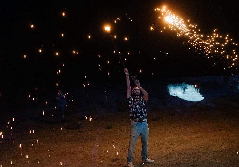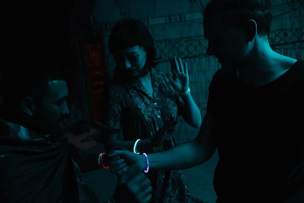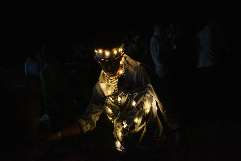 Участники фестиваля Jamaica Suk, Alien Rain надевают неоновые браслеты