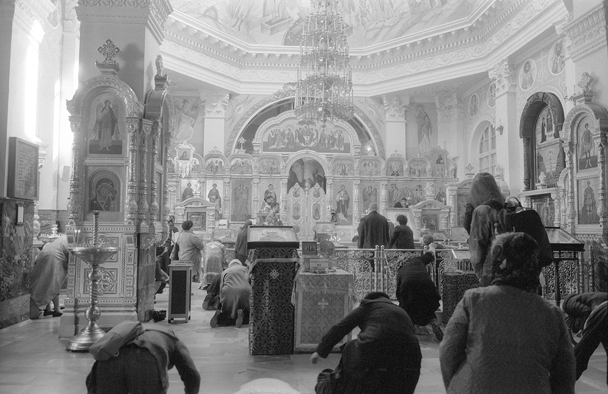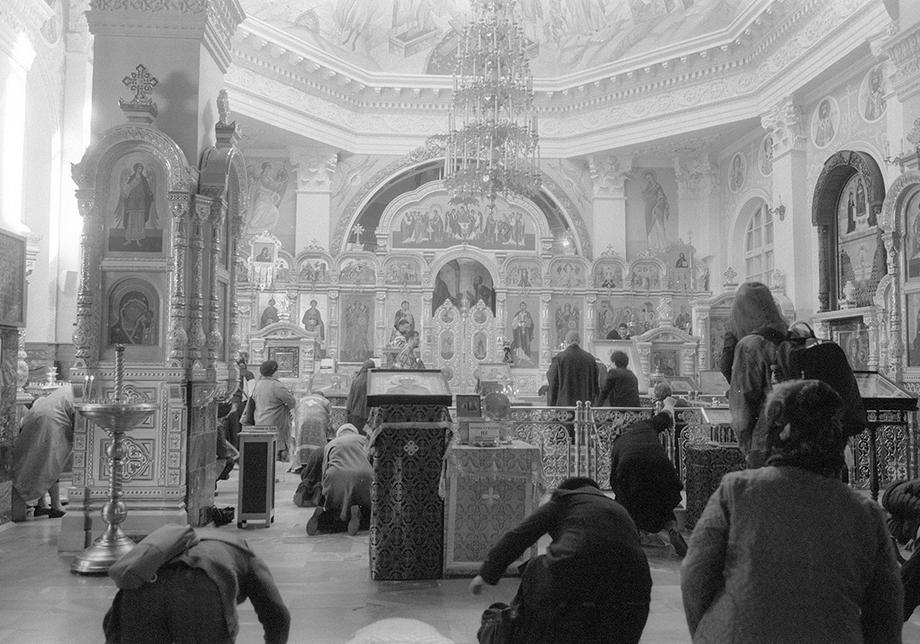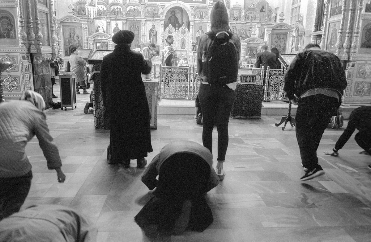Идет первая неделя поста, читается канон Андрея Критского. Народу много, и как поразительно встретить выходящего из двери моего героя-грека из прошлого репортажа — Георгия Химониди.