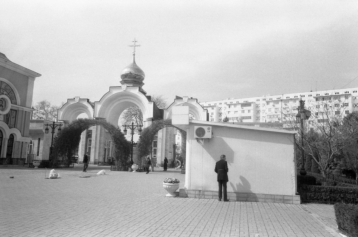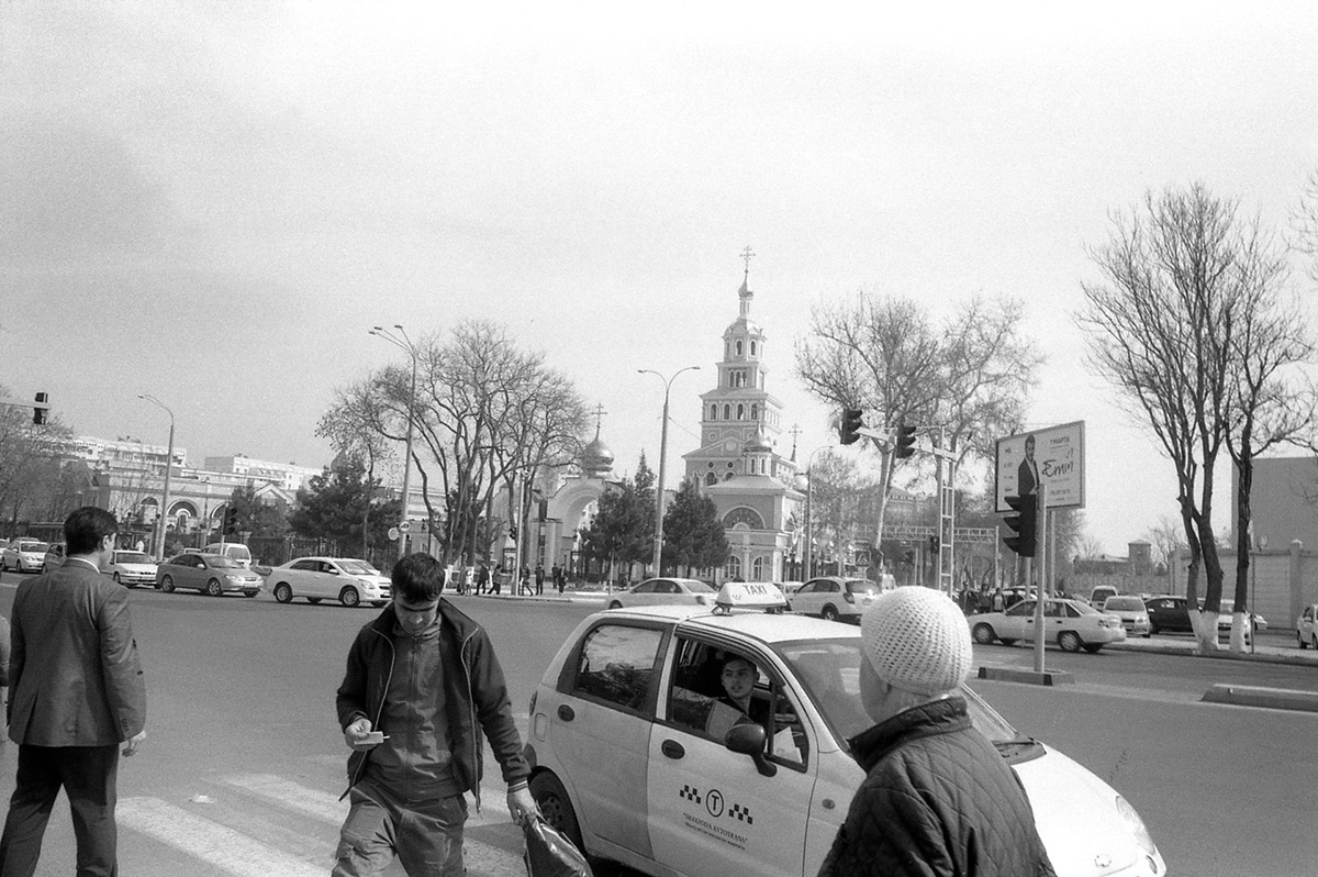Я в Успенском соборе, главном храме Ташкента. Церковь Святого Пантелеймона (1879) при Туркестанском военном госпитале, стоявшая тут первоначально, в 1933 году была превращена в склад Среднеазиатского военного округа, но уже в 1945-м возвращена верующим и освящена как кафедральный Успенский собор. В нынешнем виде собор возведен в 1958-1960 годах при Хрущеве, то есть в послевоенную религиозную оттепель и до начала второй волны гонений на веру.