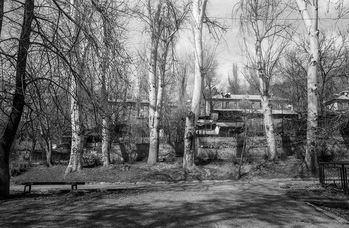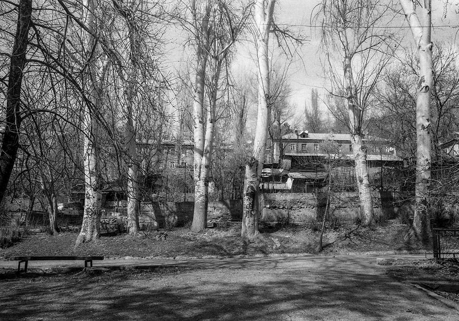 Поразительные места — Ангрен, Дукент и особенно Янгиабад — городок шахтеров, а сейчас — призраков. Я шла как-будто по неживым улицам, застывшими во времени. Иногда медленно выходят люди, медленно лают собаки — тоже не отсюда как-будто бы, и эта атмосфера разрухи и потертой штукатурки потрясает. Кстати, сам Янгиабад строился в основном силами немецких переселенцев с Волги и других районов СССР, поэтому, возможно, в результате влияния немецкой культуры город имеет своеобразную архитектуру, напоминающую архитектуру немецкого городка XIX-XX веков.