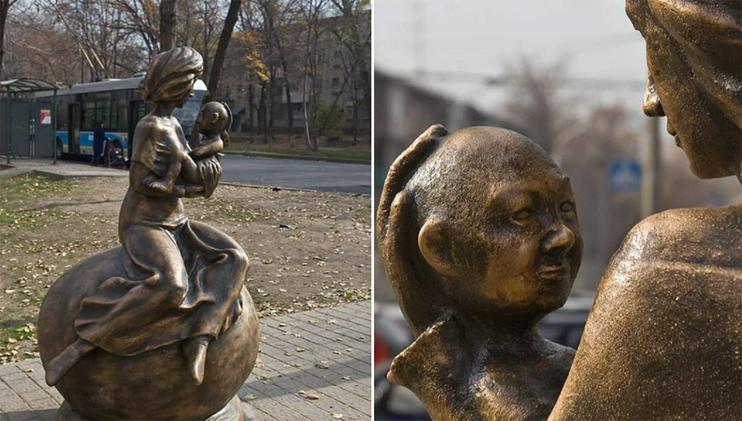 В начале текущего года в Алма-Ате активно обсуждали композицию «Мать и дитя» возле одного из городских родильных домов. В комментариях пользователи соцсетей сравнили ребенка с Добби (персонаж из книг про Гарри Поттера) и героями фильмов-ужасов.