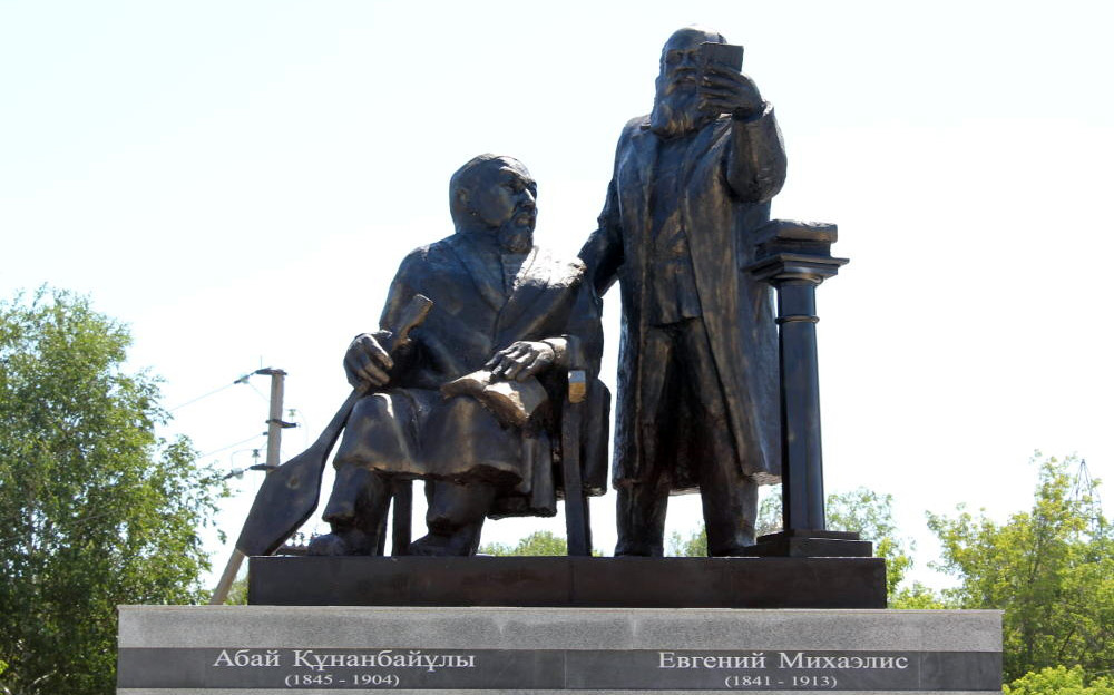 Несколько лет назад в Усть-Каменогорске был установлен памятник поэту Абаю Кунанбаеву и ученому Евгению Михаэлису. Четырехметровая скульптура, сделанная Владимиром Самойловым и Евгением Непьяновым, простояла всего день, после чего была демонтирована. Горожане прозвали ее «сэлфи Абая с Михаэлисом».