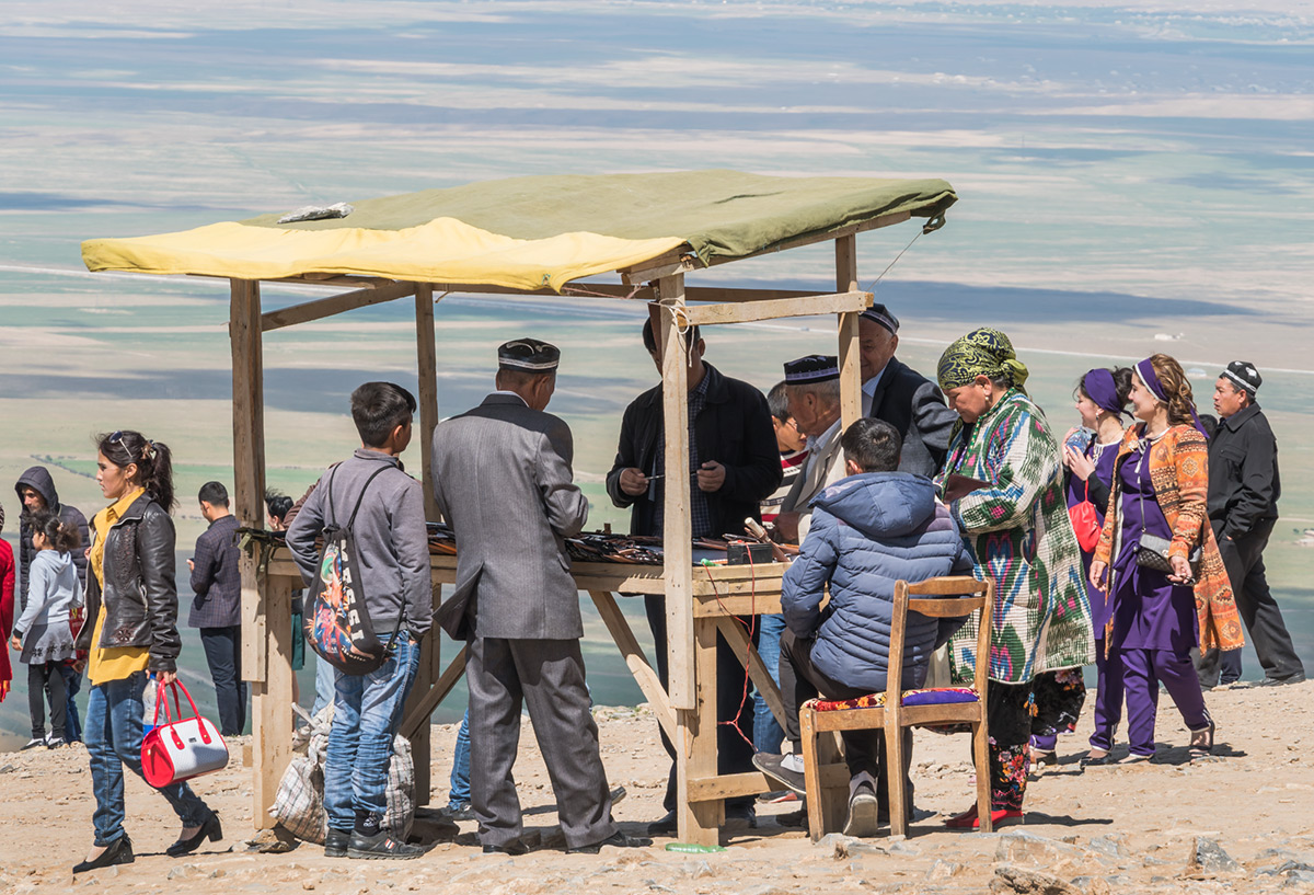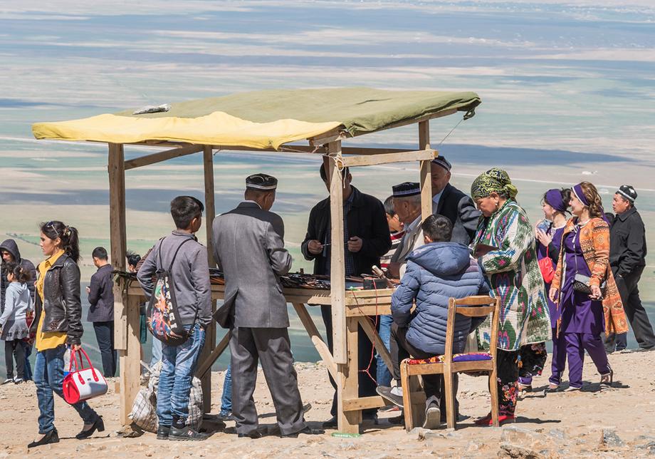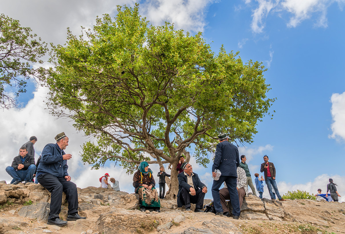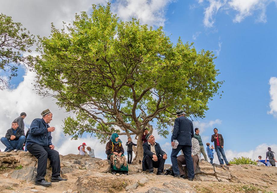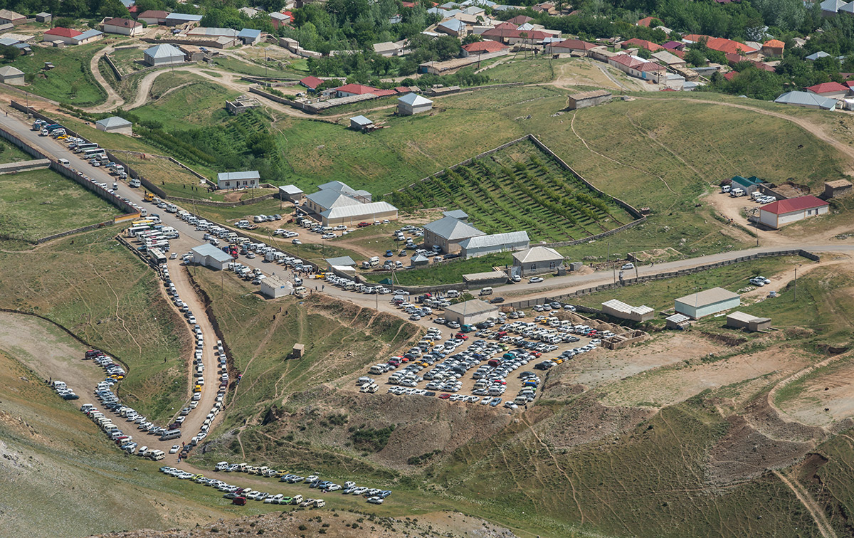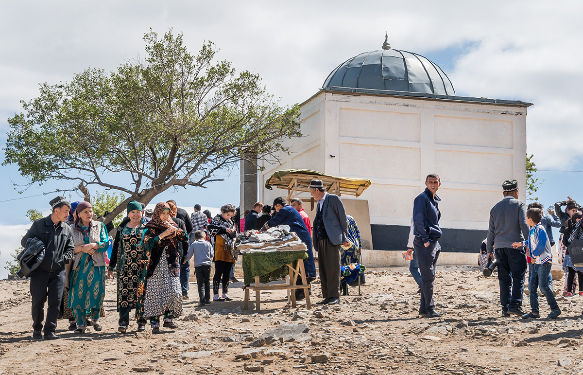 В сорока километрах к югу от Самарканда, на повороте автотрассы в город Карши, расположен небольшой поселок Аксай. Посреди голой степи тут возвышается монументальная арка с арабской вязью, которая указывает современным паломникам верное направление. Чуть дальше стоит шлагбаум, ограничивающий въезд на довольно крутой серпантин, идущий вверх по горному склону. Однажды отсюда упал в пропасть автобус, и с тех пор движение по этому серпантину разрешено только легковым машинам. После ограничения таксистам и водителям микроавтобусов, перевозящим по выходным паломников из Бухары, Самарканда и Шахрисабза, работать стало легче. Теперь они шутят, что тоже считают Дауда своим покровителем.