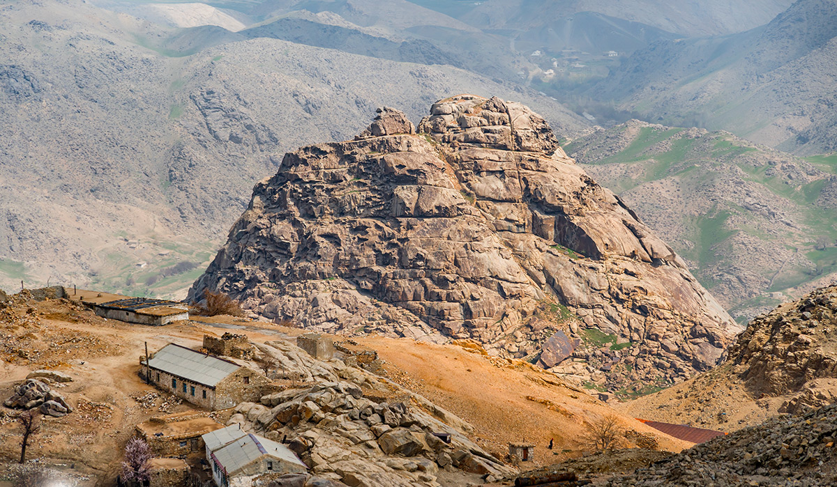 Скалу, которую предания называют пристанью легендарного Ноева ковчега, можно заметить издалека. В реальности она не выше соседних горных вершин, но по своему расположению как бы господствует над окружающим пространством, выделяясь своим одиночным расположением и необычной формой. Три ее склона почти отвесны и только четвертый имеет пологий уклон, по которому среди валунов и россыпей щебня проходит узкая тропа. С южного склона скальный массив расколот глубокой вертикальной расщелиной. Таким образом, у скалы оказалось две вершины. Одна из них имеет абсолютно плоскую площадку размером почти в сто квадратных метров. Именно на ней исследователь-энтузиаст из Бухары Хаким Джураев обнаружил в 2006 году остатки древней кирпичной кладки.