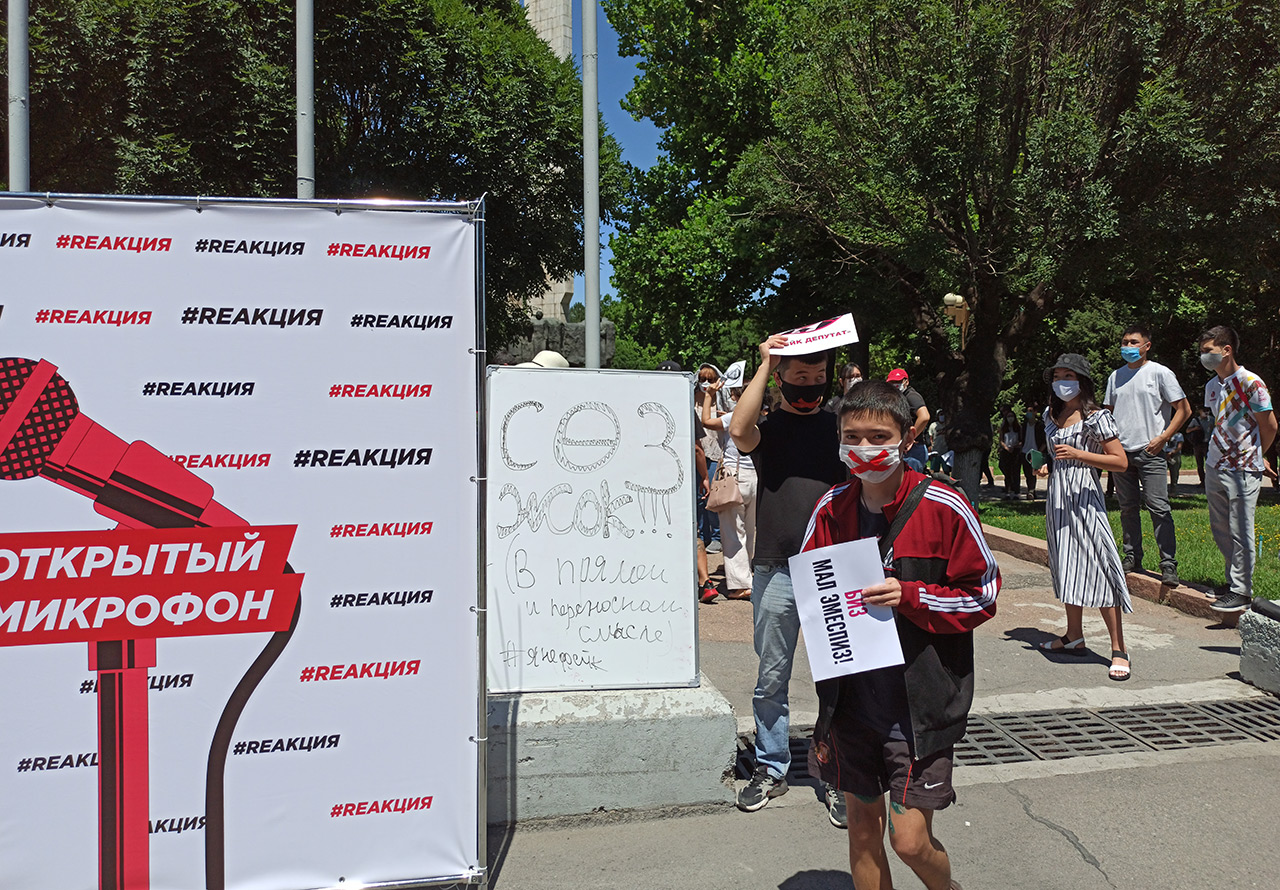 В Бишкеке 29 июня состоялся мирный марш протеста ReАкция3.0, участники которого потребовали от президента Сооронбая Жээнбекова не подписывать закон «О манипулировании информацией», также известный как «закон о фейках».