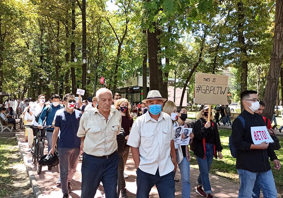 Несколько сотен участников собрались у памятника Фрунзе и прошли по бульвару Эркиндик до стен парламента. Митингующие скандировали «Гульшат, сдай мандат!», обращаясь к автору законопроекта Гульшат Асылбаевой, и «Эркиндик!» («Свобода!»).