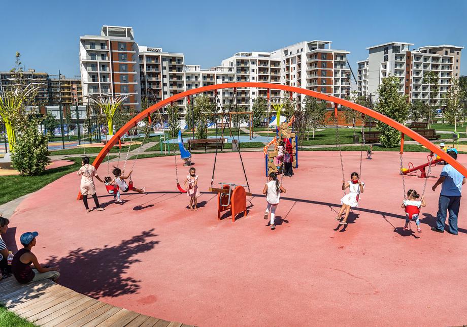 Tashkent-City много детских площадок с нехитрыми, но бесплатными аттракционами