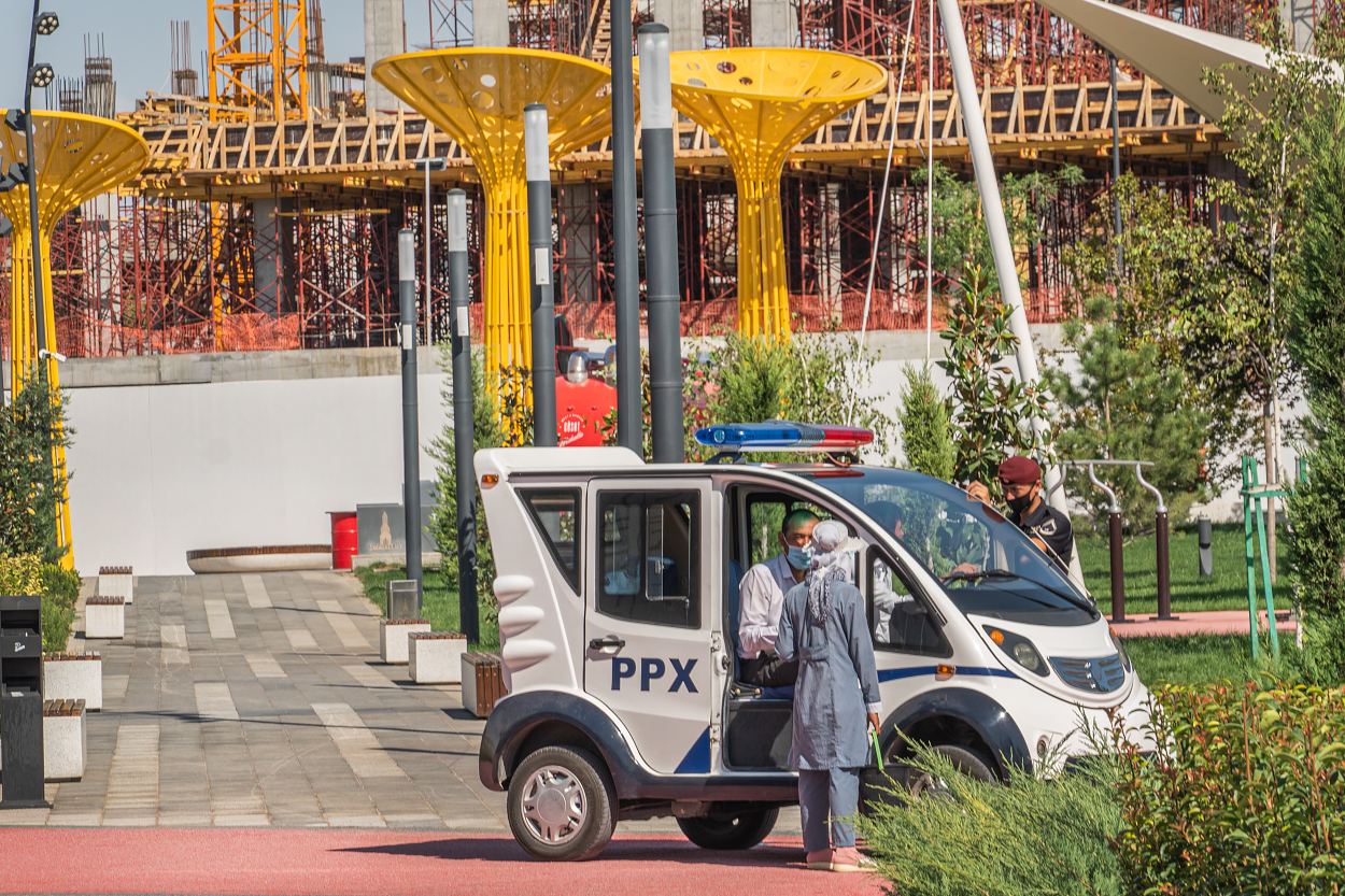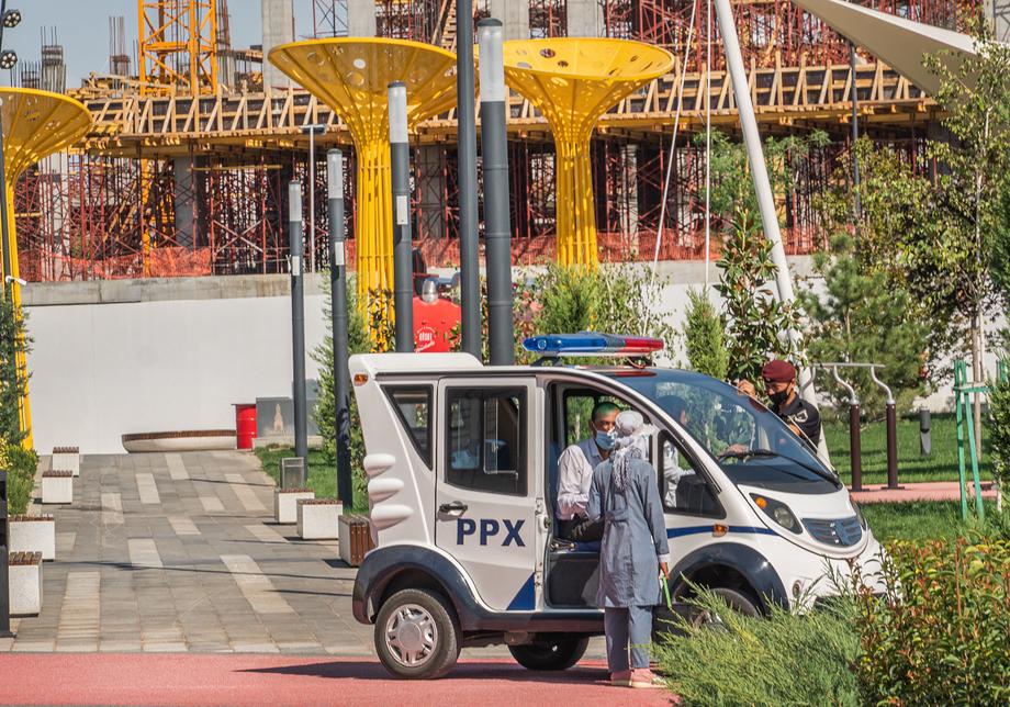 Повсюду снуют патрульные мини-мобили, призывающие носить маски и соблюдать социальную дистанцию
