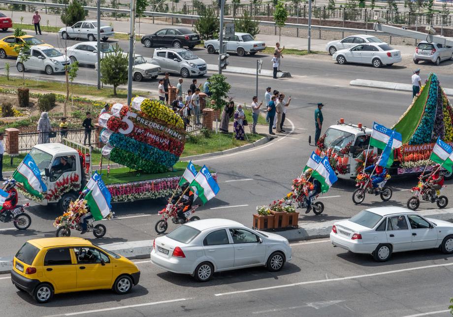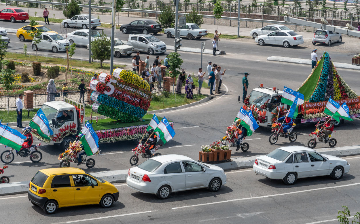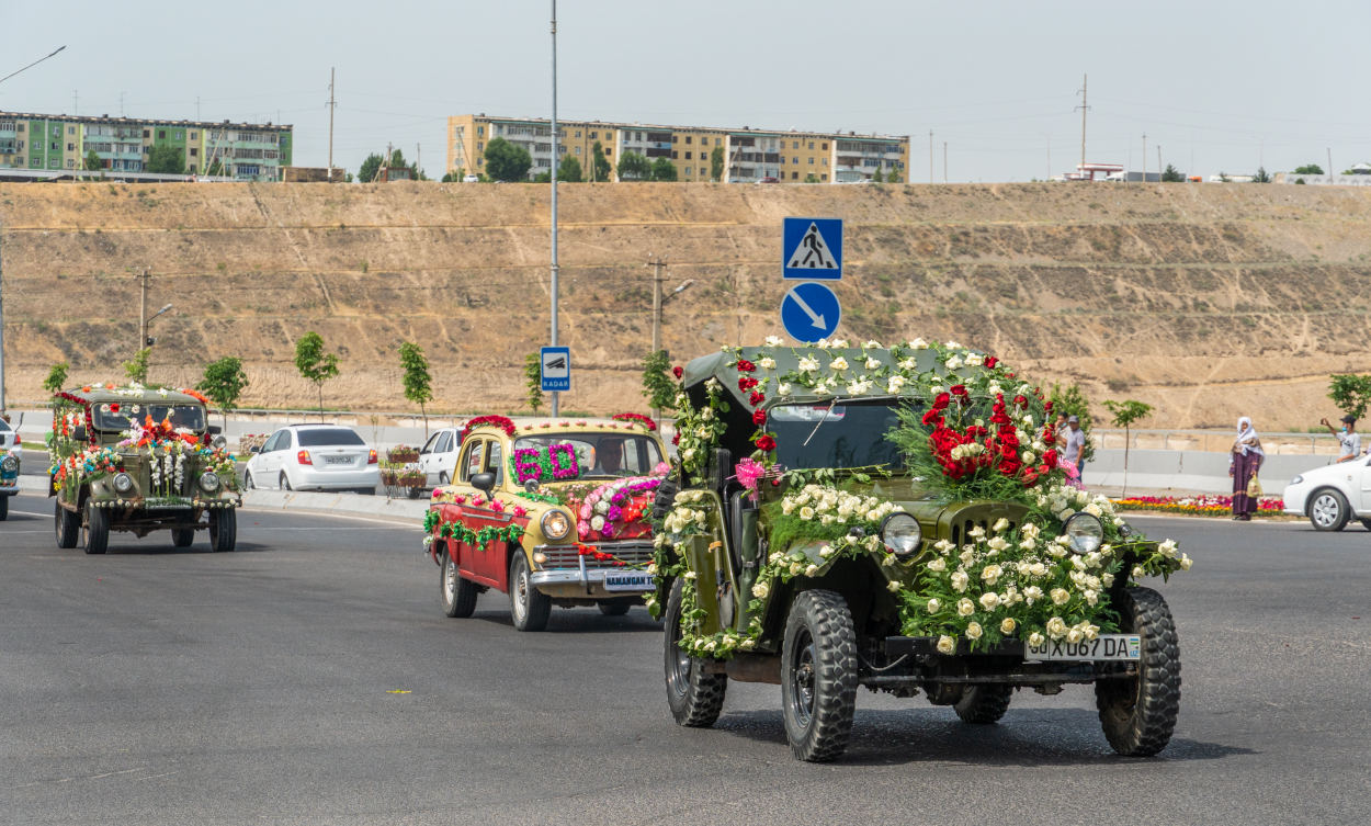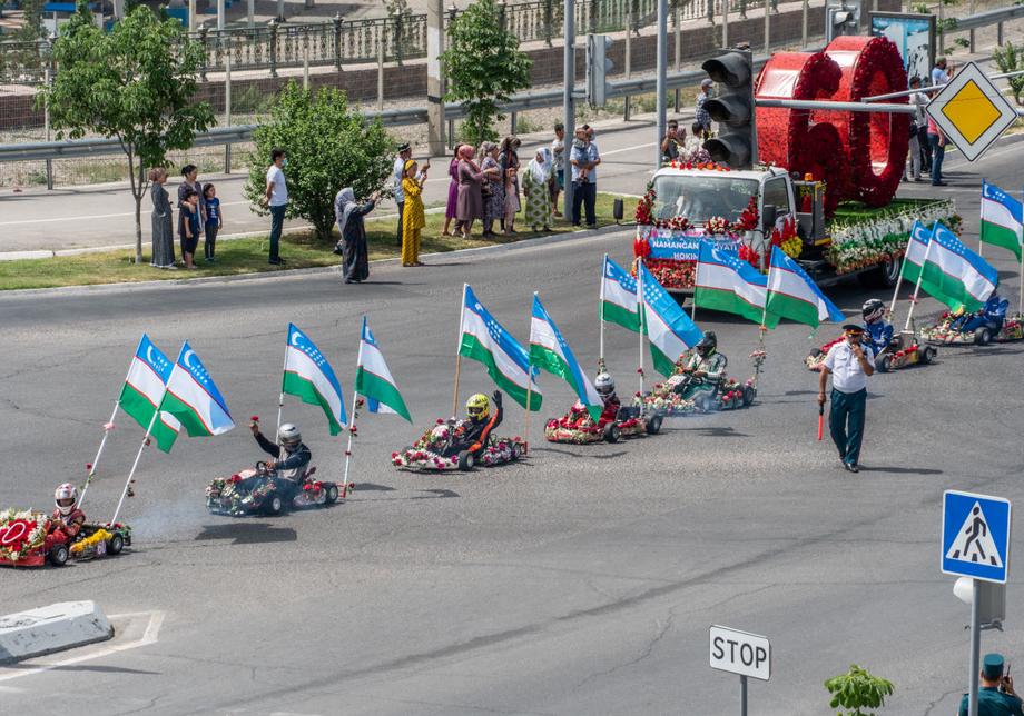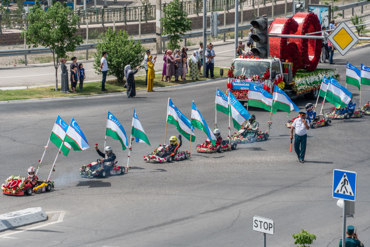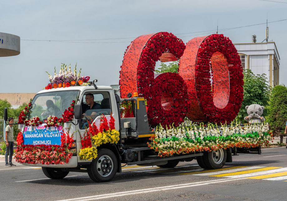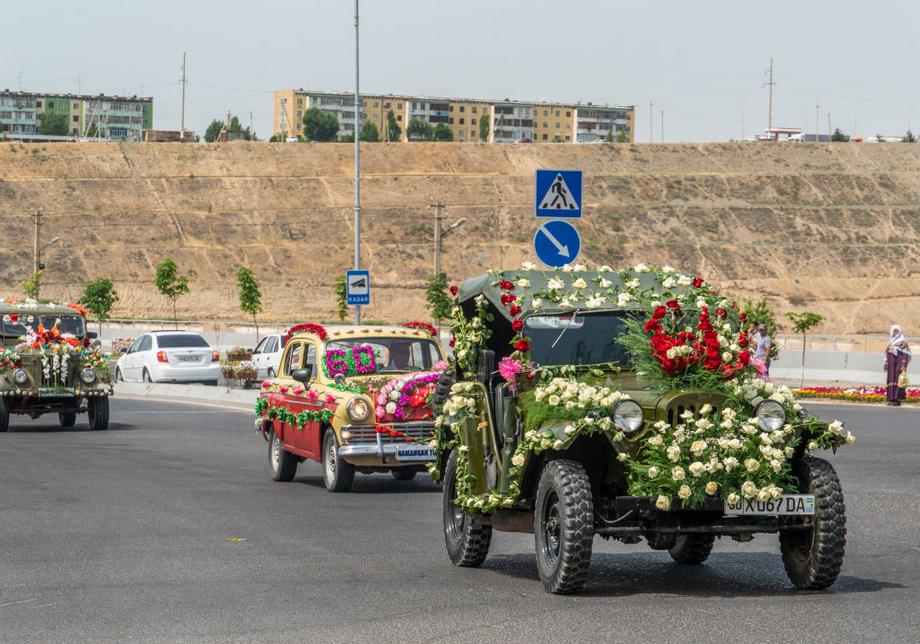 Стартовал фестиваль с традиционного парада сотен автомобилей, украшенных цветочными композициями. В экзотическом автокараване можно было увидеть современные и старинные транспортные средства, военные машины и сельхозтехнику. Праздничная колонна с утра выехала из международного аэропорта Намангана и не спеша проследовала по главным улицам города, завершив свое шествие у центрального парка имени Захираддина Мухаммада Бабура.