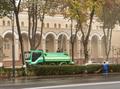 Власти столицы предпринимают меры для того, чтобы снизить количество пыли в воздухе — в центре города кроны деревьев и памятники поливают водой из шлангов.