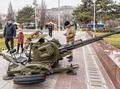 Военная техника и посетители экспозиции на площади Дружбы народов. Фото Андрея Кудряшова / "Фергана"