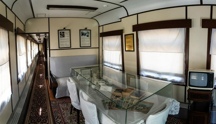 Рядом с музеем стоит персональный железнодорожный вагон, в котором первый секретарь совершал деловые поездки по Узбекистану и где, по официальной версии, скончался на рабочем посту от сердечного приступа. Это произошло 31 октября 1983 года в Эликкалинском районе Каракалпакской АССР.