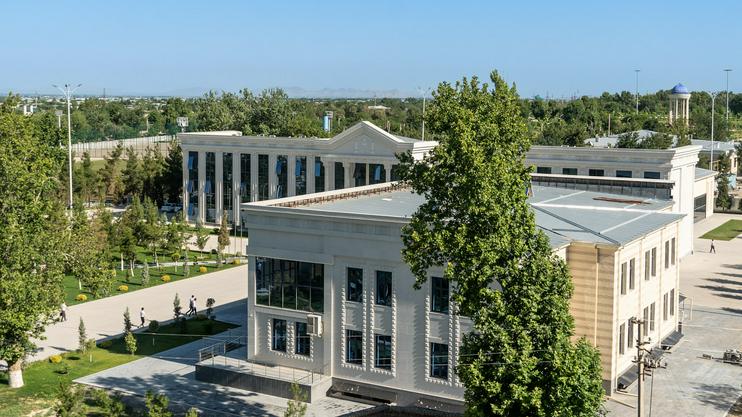 Вид на мемориальный музей Хамида Олимджана и Зульфии (справа) и мемориальный музей Шарафа Рашидова. Фото Андрея Кудряшова/"Фергана", 2022 г.