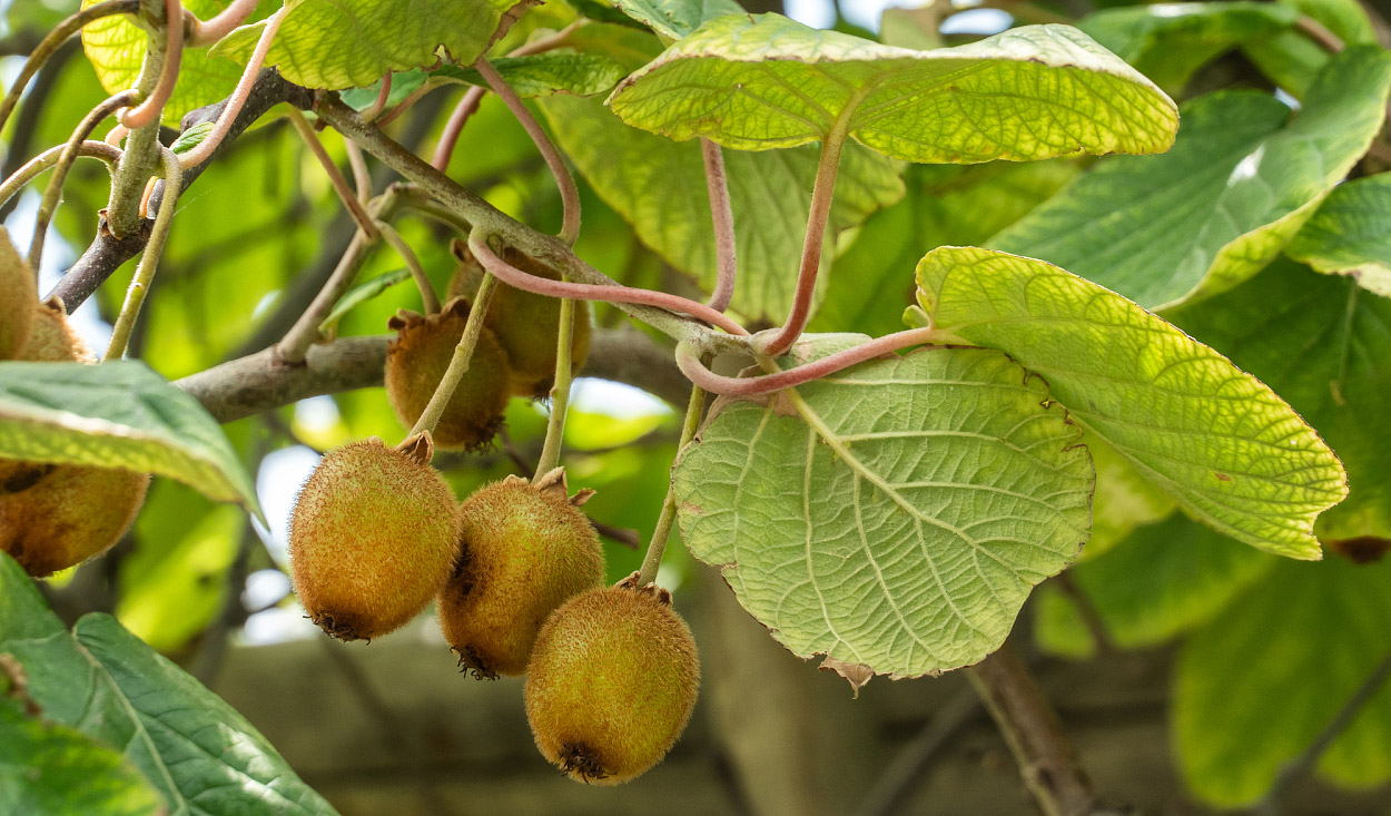 Киви прекрасно переносит местные мягкие зимы. Плоды появляются уже весной, но должны спеть до середины осени. Тогда они приобретают медовую сладость, какую не встретишь у импортных недозревших и потому кислых плодов, продающихся в супермаркетах. Киви — двудомные растения, и чтобы получать урожай плодов, необходимо на одной плантации выращивать мужские растения рядом с женскими.