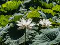 У орехоплодного лотоса листья и цветы поднимаются высоко над водой. Большие белые цветы с розоватой каймой по краям лепестков достигают 30 сантиметров в диаметре. Цветы кувшинок более миниатюрные, а листья в форме сердечек иногда с загнутыми вверх краями покрыты восковым налетом и плавают на воде. В иллюстрациях к русским сказкам Царевну-Лягушку рисуют сидящей именно на листе кувшинки. Что географически достоверно. Ведь в отличие от теплолюбивых лотосов кувшинки встречаются в европейских болотах до северной Скандинавии.