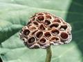 На летнем солнце коробочки лотоса быстро темнеют, становясь похожими на фантастические гнезда гигантских ос. Семена в них тоже становятся твердыми, темными и непригодными для еды. Но это вовсе не значит, что они погибли. Даже пролежав в сухом виде десятки лет и затем попав в подходящие условия — на дно илистого водоема, — они сразу начнут прорастать, и в теплом климате могут дать новый урожай уже через год.