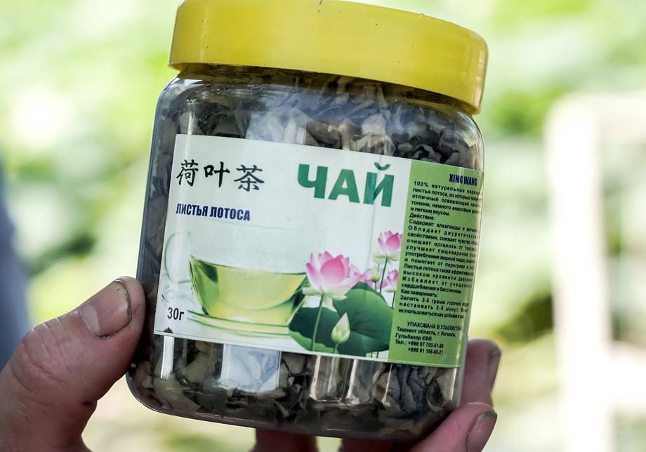 Хэ Шули показала корреспондентам «Ферганы» образец оздоровительного чая, на который уже получен сертификат. Для запуска в производство осталось только перевести этикетку на узбекский язык.