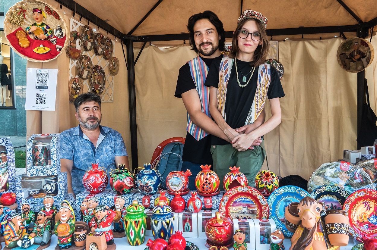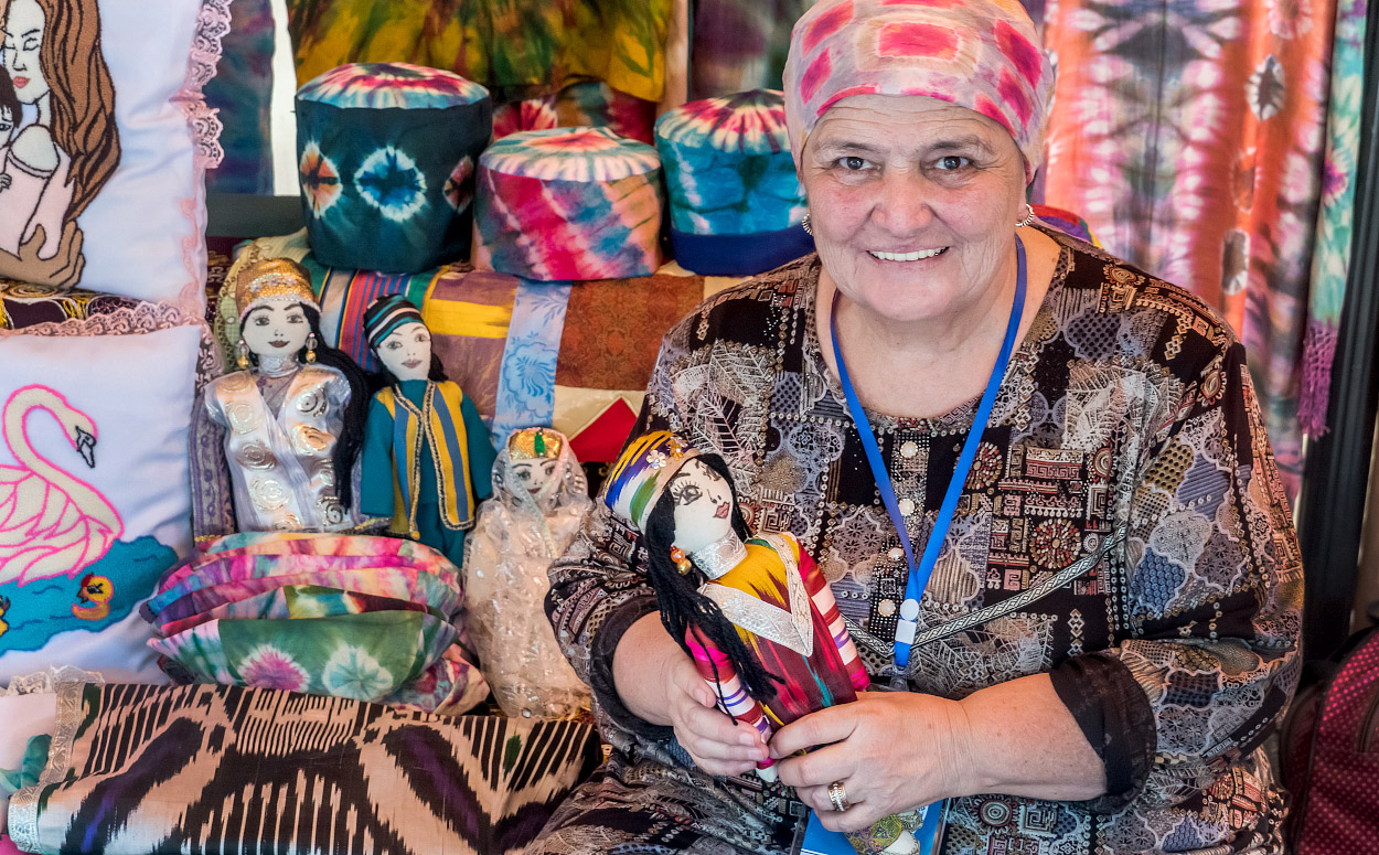 В течение трех дней посетители выставки — зарубежные гости и местные жители — могли не только приобрести понравившиеся сувениры из первых рук, но и поучаствовать в мастер-классах, попробовать своими руками изготовить глиняные кувшины, сделать выкройку тюбетейки или принять участие в изготовлении деревянного бешика — традиционной детской колыбели.
