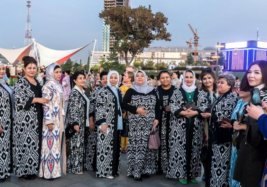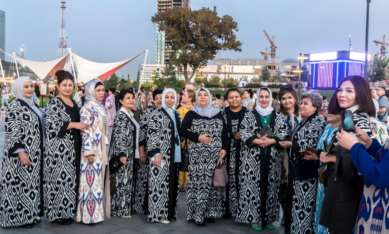 Парад в Tashkent City в отличие от аналогичных мероприятий подчеркнул популярность этой ткани. Когда колонна юных красавиц достигла центральной площадки парка, там ее встретили сотни женщин всех возрастов, также одетых в наряды из хан-атласа.