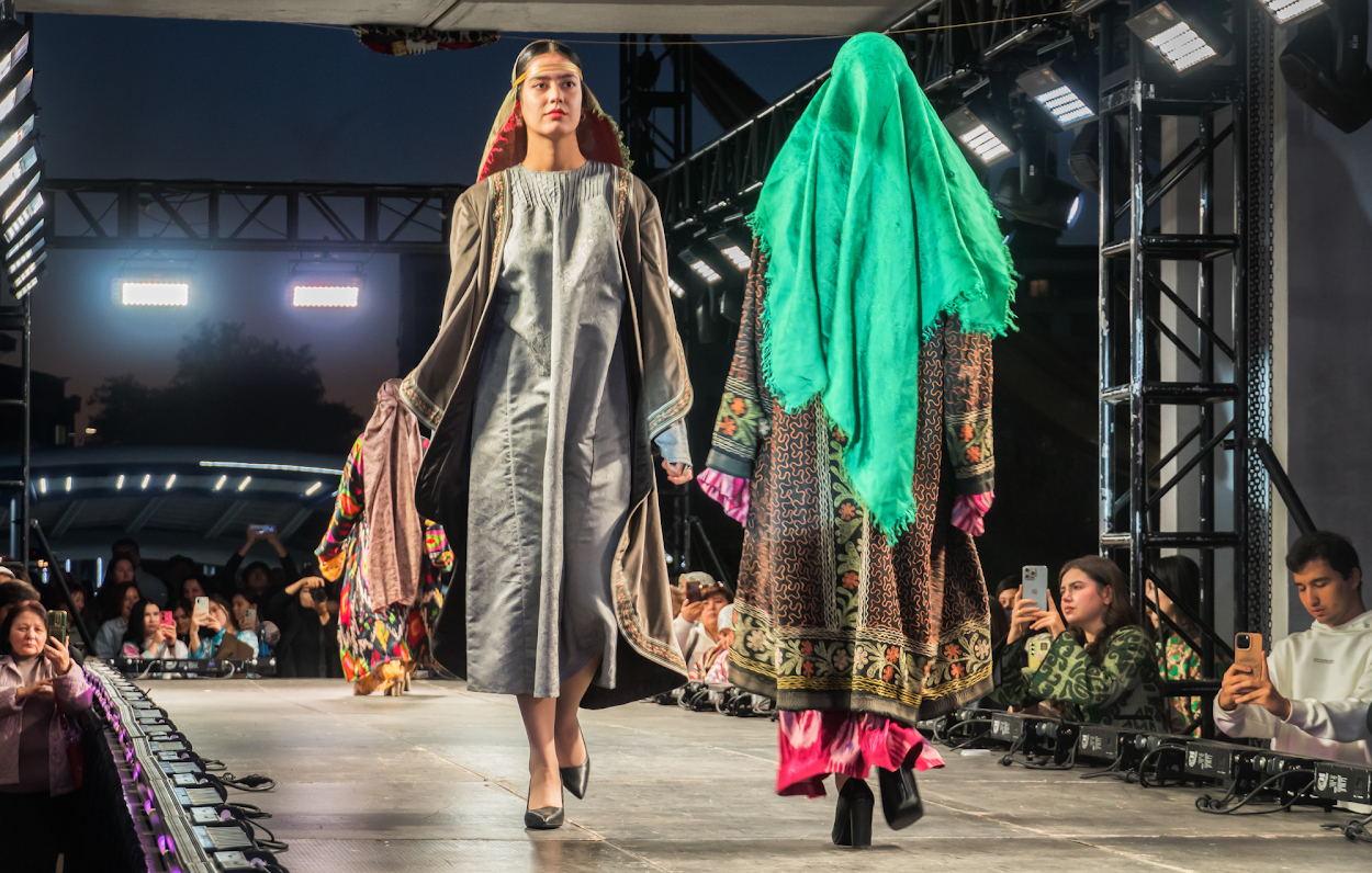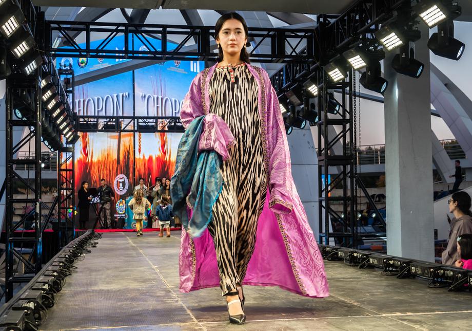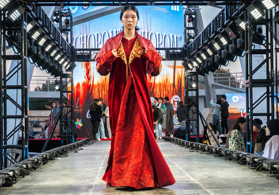 На подиуме под открытым небом состоялся показ разнообразных моделей одежды, на котором традиционный узбекский чапан был представлен как ключевой элемент авторских стилей, соединяющих историческое наследие и актуальные дизайнерские тенденции. Дефиле сопровождалось светомузыкальным шоу с народными музыкальными ритмами, энергичными DJ-сетами и выступлениями солистов эстрады.