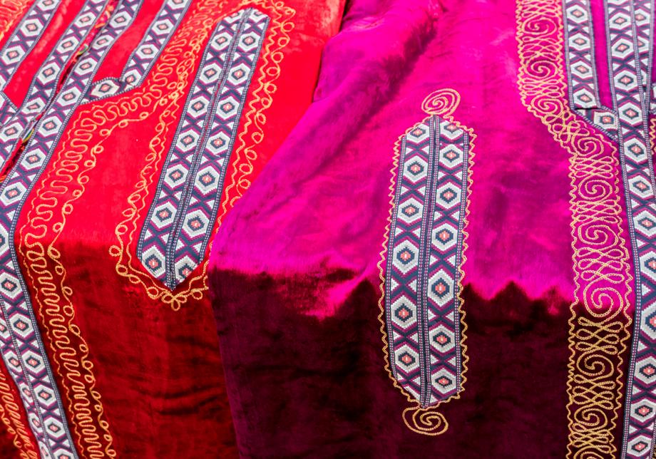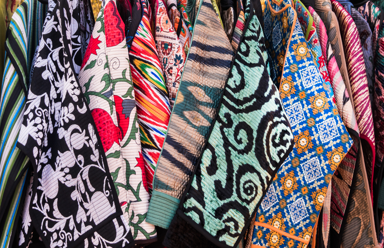 В регионах Узбекистана предпочитают свои чапаны. В Ташкентской области чаще встречаются приглушенные цвета и минимальные украшения – только плетеная тесьма по краям. В Бухаре и Самарканде любят пронзительно синие или густо бордовые бархатистые изделия с очень броской и богатой вышивкой. В остальных регионах более популярны «классические» полосатые чапаны из ткани бекасам, сочетающей хлопковые и шелковые волокна, что придает изделиям особенную прочность, легкость и стойкость к износу.