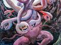 Характерно, что доисламская тюркская мифология особенно интересует художников из Кашкадарьи — обширного региона Узбекистана, где жизнь людей, как и сотни лет назад, близка к природе, и бытовой уклад сохраняет множество древних традиций. Год назад «Фергана» рассказывала об интересном опыте исследования мифологии, предпринятом художником из Китаба Эльнуром Эгамовым. Но в его работах изображался в основном «верхний слой» тенгрианского пантеона — божества и божки древних тюркских небес. А бестиарий его земляков, писателя Шерзода Комила Халила и художника Чори Шамса, рассказывает о множестве других мифологических существ, блуждавших в подсознании предков по его самым отдаленным и мрачным уголкам.